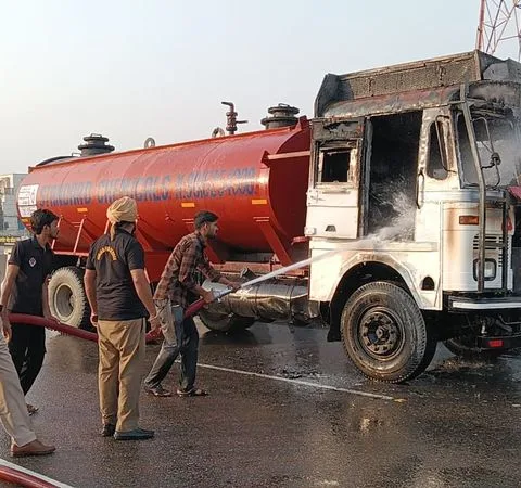 फगवाड़ा के पास एसिड से भरे टैंकर में आग लगने से ड्राइवर की सतर्कता से बड़ा हादसा टल गया