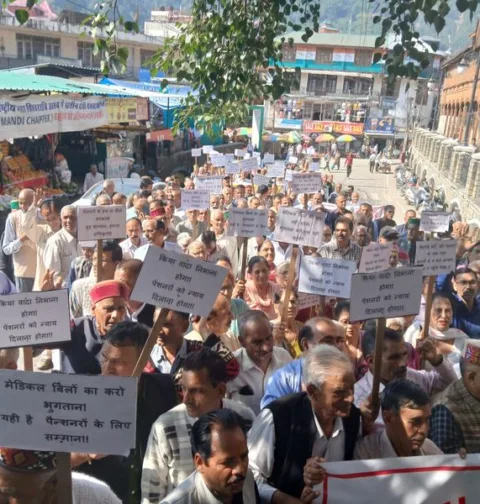 मंडी में 1,500 से अधिक लोगों ने विरोध मार्च निकाला