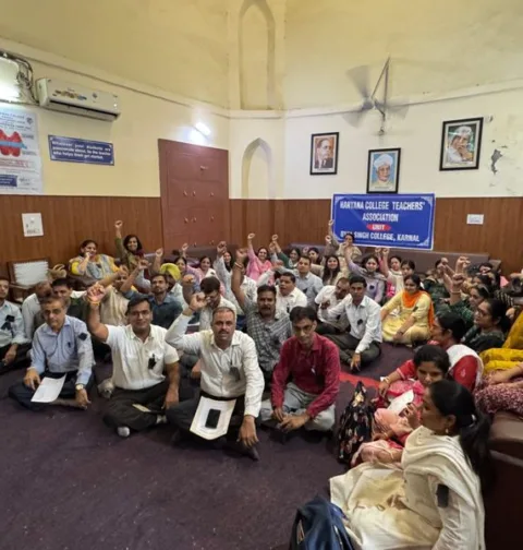 दयाल सिंह कॉलेज के शिक्षकों ने लंबित मांगों को लेकर किया प्रदर्शन