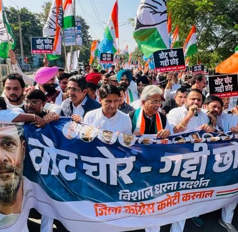 कांग्रेस ने करनाल से शुरू किया ‘वोट चोर, गद्दी छोड़’ आंदोलन