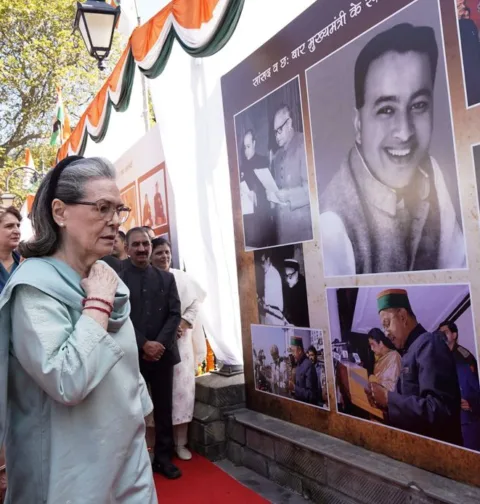 सोनिया गांधी ने शिमला में हिमाचल के छह बार मुख्यमंत्री रहे वीरभद्र सिंह की प्रतिमा का अनावरण किया