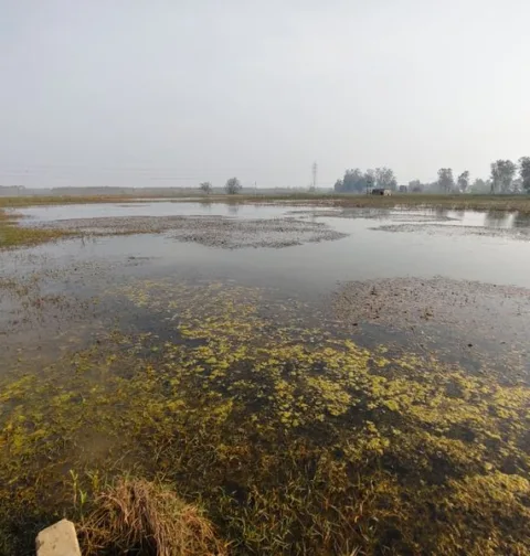 यमुनानगर गांव में मौसमी नदियों में जलभराव किसानों के लिए चिंता का विषय है।