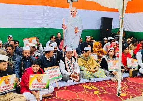 एमजीएनआरईजीए का नाम बदलने के विरोध में कांग्रेस ने गुरुग्राम में मौन सत्याग्रह किया