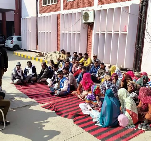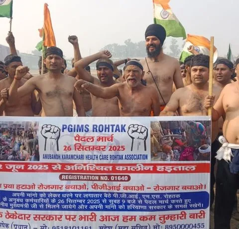 दिहाड़ी मजदूरों ने अर्धनग्न होकर विरोध प्रदर्शन किया
