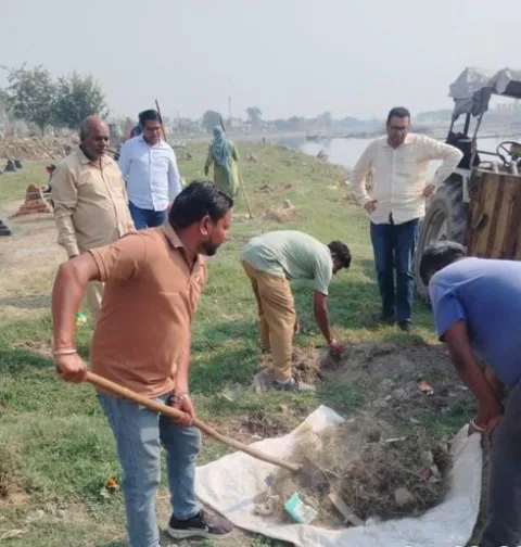 यमुनानगर में नगर निगम ने पश्चिमी यमुना नहर के घाटों की सफाई की