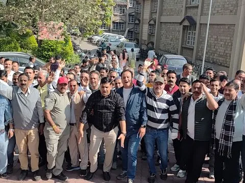 धर्मशाला में बकाया भुगतान में देरी के विरोध में ठेकेदारों का प्रदर्शन