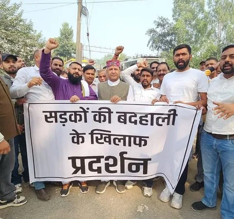 नाहन में भाजपा ने खराब सड़कों के विरोध में प्रदर्शन किया