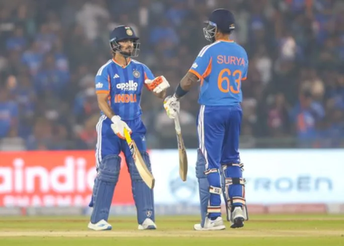 विशाल लक्ष्य का पीछा करने उतरी भारतीय टीम ने खराब शुरुआत के बावजूद महज 15.2 ओवरों में जीत दर्ज कर ली। टीम इंडिया को 6 के स्कोर पर संजू सैमसन (6) और अभिषेक शर्मा (0) के रूप में दो बड़े झटके लगे, लेकिन यहां से ईशान किशन ने कप्तान सूर्यकुमार यादव के साथ तीसरे विकेट के लिए 48 गेंदों में 122 रन की साझेदारी करते हुए टीम को जीत की पटरी पर ला दिया।