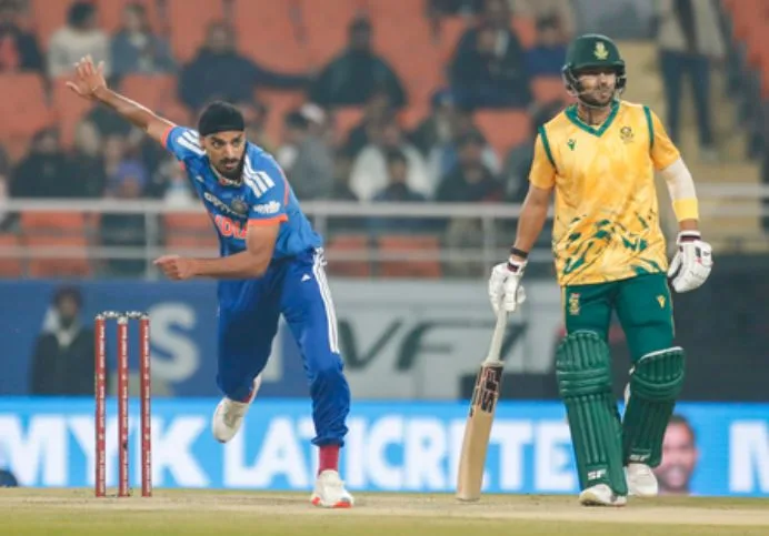 धर्मशाला, भारत ने साउथ अफ्रीका के विरुद्ध टी20 सीरीज के तीसरे मैच में 7 विकेट से जीत दर्ज करते हुए पांच मुकाबलों की टी20 सीरीज में 2-1 से बढ़त बना ली है। हिमाचल प्रदेश क्रिकेट एसोसिएशन स्टेडियम में खेले गए इस मुकाबले में भारत के तेज गेंदबाज अर्शदीप सिंह को ‘प्लेयर ऑफ द मैच’ चुना गया, जिन्होंने 4 ओवरों में महज 13 रन देकर 2 विकेट हासिल किए।