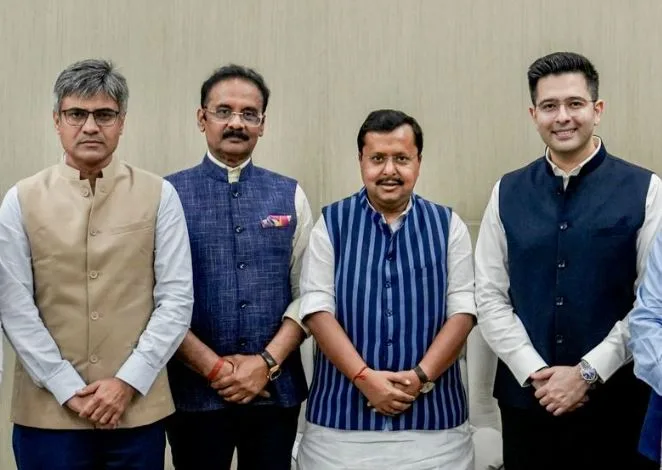 सोमवार को आम आदमी पार्टी को सबसे बड़ा झटका लगा जब राज्यसभा अध्यक्ष सीपी राधाकृष्णन ने आधिकारिक तौर पर उसके सात दलबदलू सांसदों के भाजपा में विलय को स्वीकार कर लिया और अधिसूचित कर दिया। राज्यसभा में पार्टीवार मतगणना में अब सात सांसदों – राघव चड्ढा, संदीप पाठक, स्वाति मालीवाल, हरभजन सिंह, विक्रमजीत साहनी, अशोक मित्तल और राजिंदर गुप्ता – के नाम भाजपा संसदीय दल के खंड में शामिल हैं।