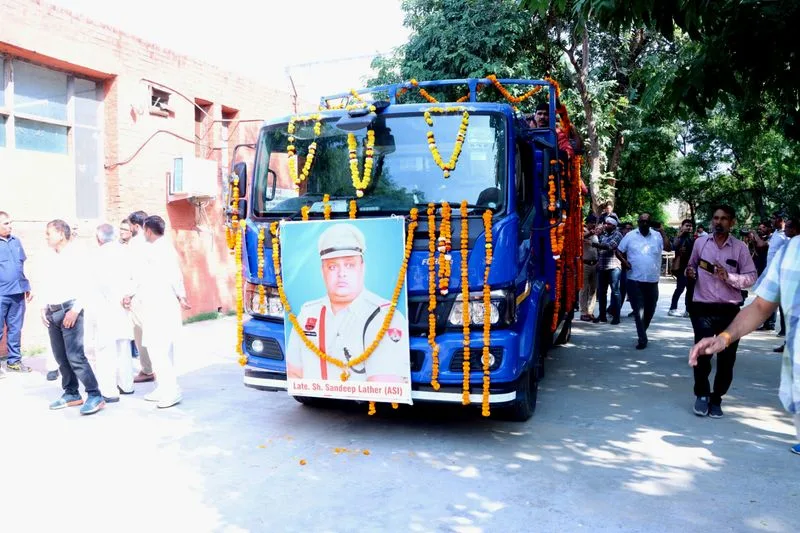 मंत्रियों, विपक्षी नेताओं, शीर्ष पुलिस अधिकारियों और सैकड़ों स्थानीय लोगों सहित शोक व्यक्त करने वालों की एक बड़ी भीड़ ने एएसआई संदीप लाठर को अश्रुपूर्ण विदाई दी, जिनका गुरुवार दोपहर जींद जिले के जुलाना शहर में राजकीय सम्मान के साथ अंतिम संस्कार किया गया।