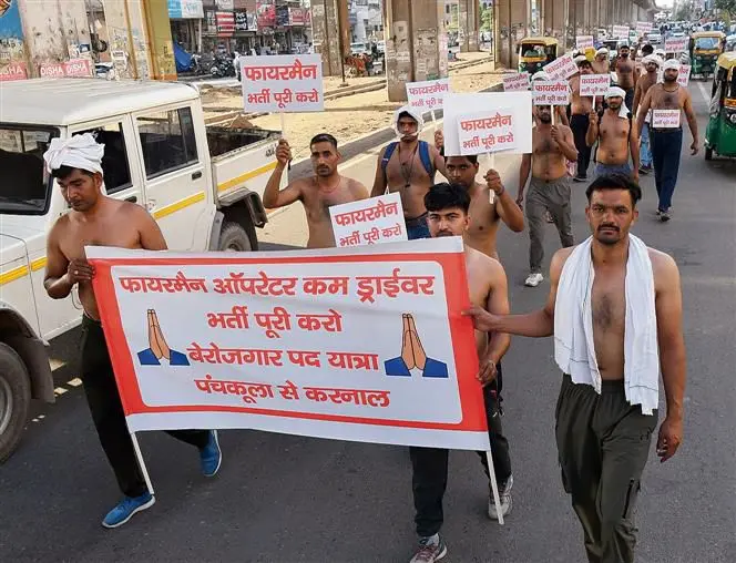 परीक्षा परिणाम का इंतजार कर रहे अग्निशमन विभाग में नौकरी के इच्छुक अभ्यर्थियों ने पंचकुला से मार्च शुरू किया