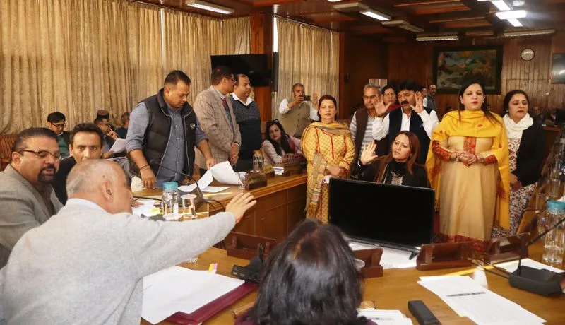 शिमला नगर निगम (एमसी) की आम सभा की बैठक के दौरान कल उस समय हंगामा मच गया जब भाजपा पार्षदों ने महापौर और उप महापौर के कार्यकाल में विस्तार की निंदा की और रोस्टर के अनुसार दोनों पदों के लिए चुनाव कराने की मांग की।