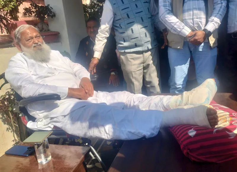 हरियाणा के कैबिनेट मंत्री अनिल विज शनिवार देर रात अपने वॉशरूम में फिसलने के बाद दोनों टखनों में हेयरलाइन फ्रैक्चर का शिकार हो गए हैं और उन्हें एक महीने के लिए पूर्ण रूप से बिस्तर पर आराम करने की सलाह दी गई है, जिससे आगामी बजट सत्र में उनकी भागीदारी पर अनिश्चितता बढ़ गई है।