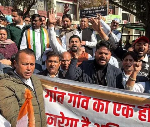 कांग्रेस ने एमजीएनआरईजीए का नाम बदलने के विरोध में करनाल में जिला स्तरीय प्रदर्शन किया।