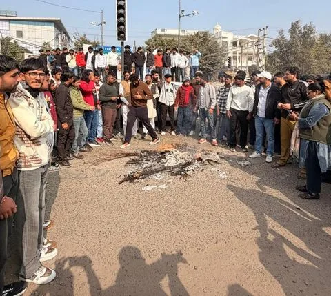 छात्रों ने एमडीयू के कुलपति का पुतला जलाया, भर्ती प्रक्रिया को तत्काल रोकने की मांग की