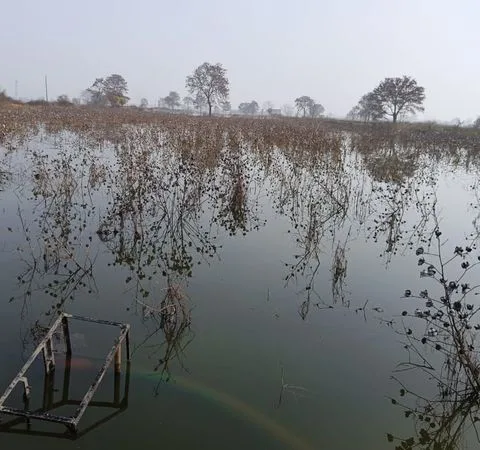 पांच महीने बीत जाने के बाद भी भिवानी के गांवों में खेतों में बारिश का पानी भरा रहता है।