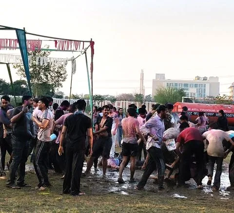सोनीपत स्थित डॉ. बी.आर. अंबेडकर राष्ट्रीय विधि विश्वविद्यालय के कर्मचारियों और छात्रों ने होली मनाई।
