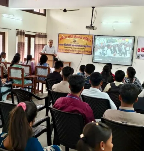 नशा विरोधी जागरूकता अभियान के दौरान कॉलेज के छात्रों को जागरूक किया गया