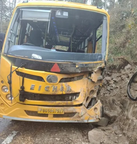 मोरनी की यात्रा पर गए हरियाणा के 20 स्कूली बच्चे बस के ब्रेक फेल होने से घायल हो गए।