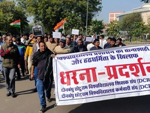 मुरथल तकनीकी विश्वविद्यालय के शिक्षकों, कर्मचारियों और छात्रों ने खराब सुविधाओं के विरोध में प्रदर्शन किया।