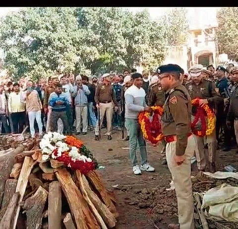 सूरजकुंड मेले की त्रासदी में शहीद हुए इंस्पेक्टर जगदीश प्रसाद का राजकीय सम्मान के साथ अंतिम संस्कार किया गया।