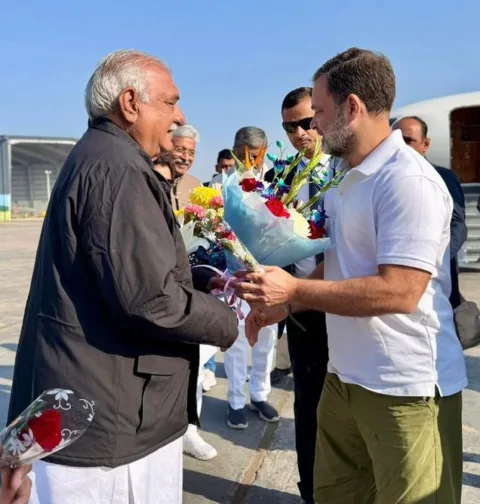 राहुल गांधी प्रशिक्षण शिविर को संबोधित करने के लिए कुरुक्षेत्र पहुंचे।