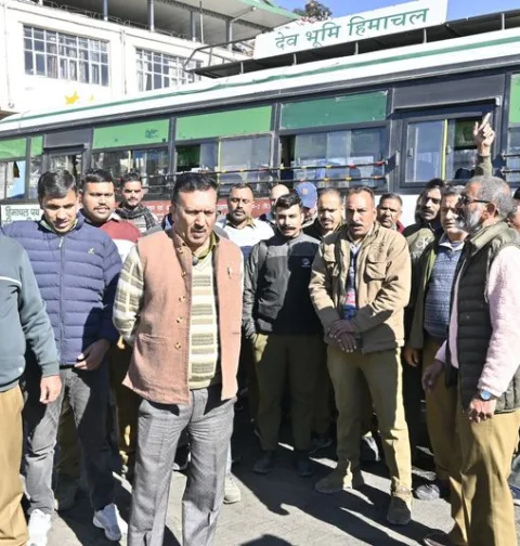 वेतन न मिलने पर एचआरटीसी कर्मचारियों ने शिमला में किया प्रदर्शन