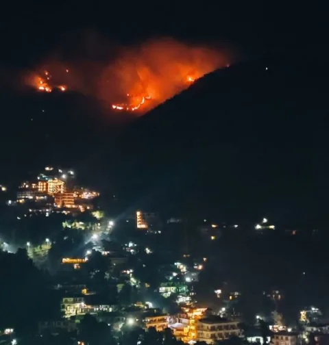 धौलाधार में त्रिउंड ट्रेकिंग मार्ग पर जंगल में आग लग गई।