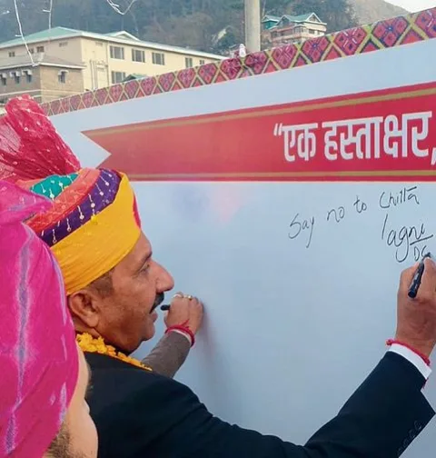 हिमाचल प्रदेश के मंडी में आयोजित सरस मेले में लोगों ने नशा-विरोधी अभियान और स्वयं सहायता समूहों को समर्थन देने का संकल्प लिया।