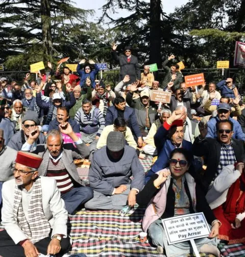 शिमला में विधानसभा के बाहर पेंशनभोगियों ने विरोध प्रदर्शन किया