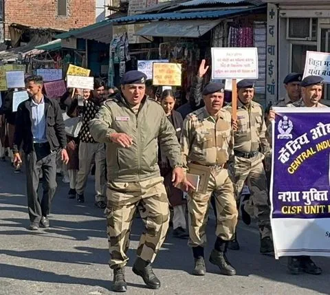 पांदोह में आयोजित नशीली दवाओं के प्रति जागरूकता रैली में 50 सीआईएसएफ कर्मियों और 200 छात्रों ने भाग लिया।