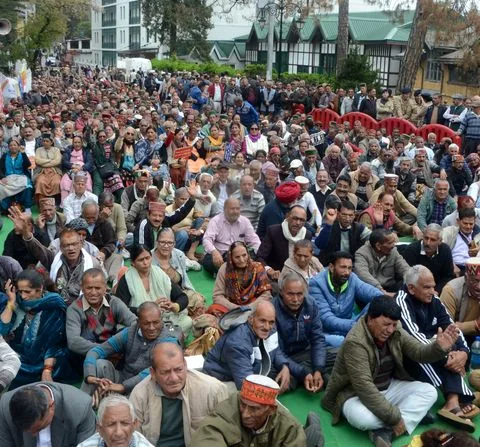 पेंशनभोगी शिमला में हिमाचल विधानसभा के पास बकाया राशि को लेकर विरोध प्रदर्शन कर रहे हैं।