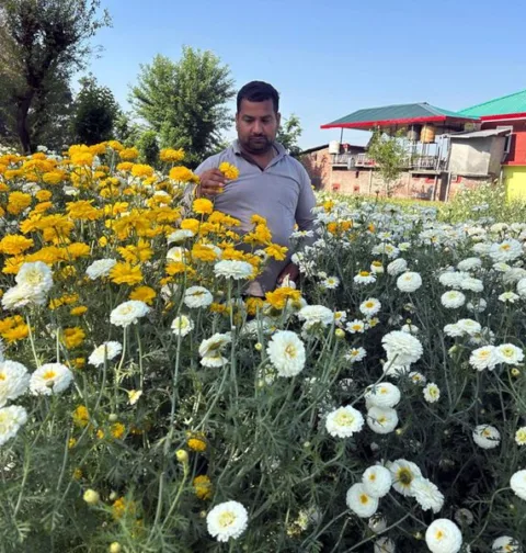 नवरात्रि के दौरान कांगड़ा के किसान द्वारा उगाए गए ऑफ-सीजन गुलदाउदी 200 रुपये प्रति किलोग्राम के भाव से बिके।