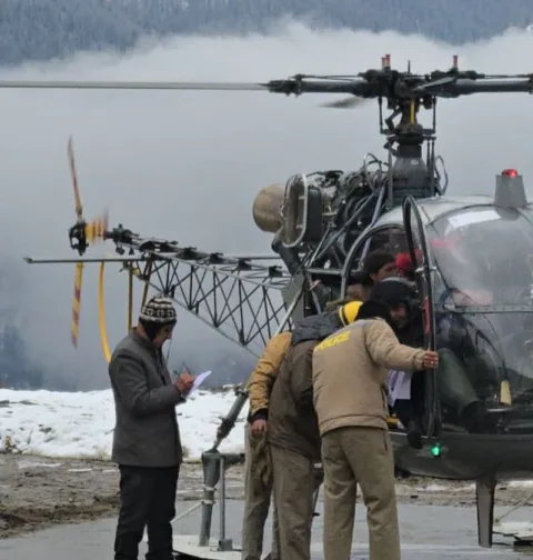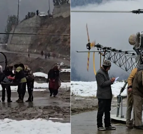 हिमपात के बीच भारतीय वायु सेना के हेलीकॉप्टर ने हिमाचल प्रदेश के धंदेरवारी से लकवाग्रस्त महिला को एयरलिफ्ट किया।