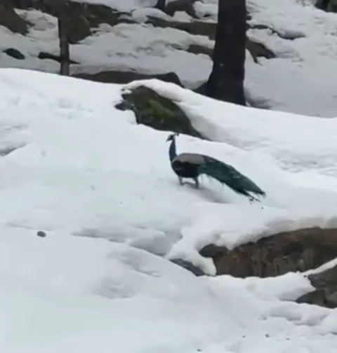 मनाली के बर्फ से ढके वन क्षेत्र में मोर दिखने से जलवायु परिवर्तन के प्रभावों पर बहस छिड़ गई है।
