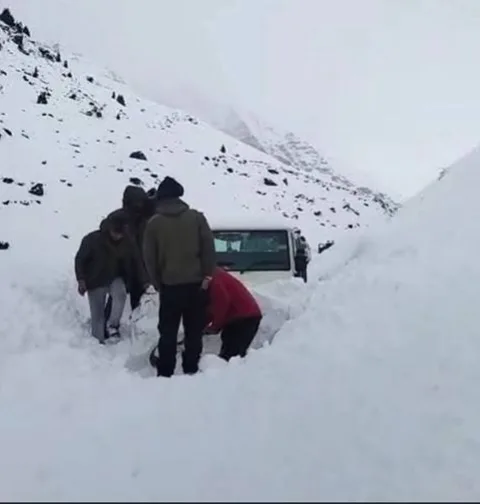 अटल सुरंग के पास मामूली हिमस्खलन के कारण एक वाहन कुछ समय के लिए फंस गया।