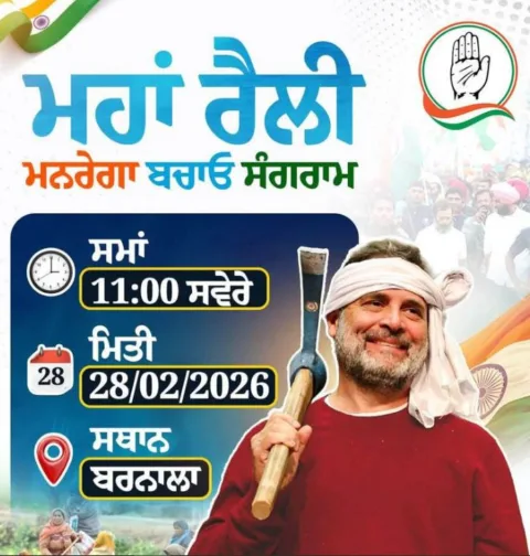 कांग्रेस ने पंजाब रैली के लिए पोस्टर जारी किया, जिसमें राहुल गांधी को कार्यकर्ता के रूप में दिखाया गया है।