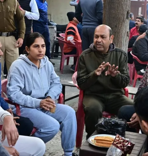 किसानों और पुलिस के बीच झड़प के विवाद के बाद बठिंडा एसएसपी ज्योति यादव ने चाय पर स्थानीय लोगों से बातचीत की।