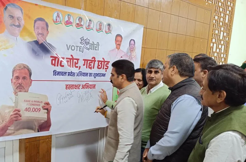 कांग्रेस ने पिछले लोकसभा और विधानसभा चुनावों में कथित वोटों में गड़बड़ी के बारे में जागरूकता बढ़ाने के उद्देश्य से आज यहाँ अपना ज़िला स्तरीय हस्ताक्षर अभियान ‘वोट चोर गड्डी छोड़’ शुरू किया। इस अभियान की शुरुआत अखिल भारतीय कांग्रेस कमेटी के सचिव विदित चौधरी, धरमपुर विधायक चंद्रशेखर, पूर्व मंत्री रंगीला राम राव और प्रकाश चौधरी, पूर्व मुख्य संसदीय सचिव सोहन लाल ठाकुर और अन्य स्थानीय नेताओं की मौजूदगी में हुई।