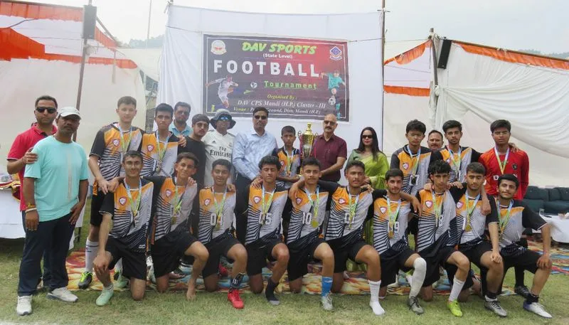 डीएवी सेंटेनरी पब्लिक स्कूल, मंडी में सोमवार को डीएवी राज्य स्तरीय फुटबॉल टूर्नामेंट 2025-26 का उत्साहपूर्वक समापन हुआ। समापन समारोह में मंडी नगर निगम के महापौर वीरेंद्र भट्ट शर्मा ने उपस्थित होकर उभरते फुटबॉल खिलाड़ियों की अनुशासन, प्रतिभा और खेल भावना की सराहना की। कार्यक्रम में डीएवी जामथल की प्रधानाचार्य दीपिका शर्मा भी मौजूद रहीं, जिन्होंने अपने प्रेरक शब्दों से युवा खिलाड़ियों का उत्साहवर्धन किया।