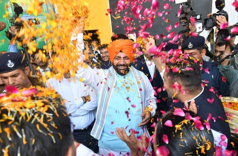 भगवा पगड़ी पहने, बजट पेश करने के लिए विधानसभा पहुंचे सैनी का सत्ता पक्ष के सदस्यों ने “जो बोले सो निहाल” के नारे लगाकर स्वागत किया।