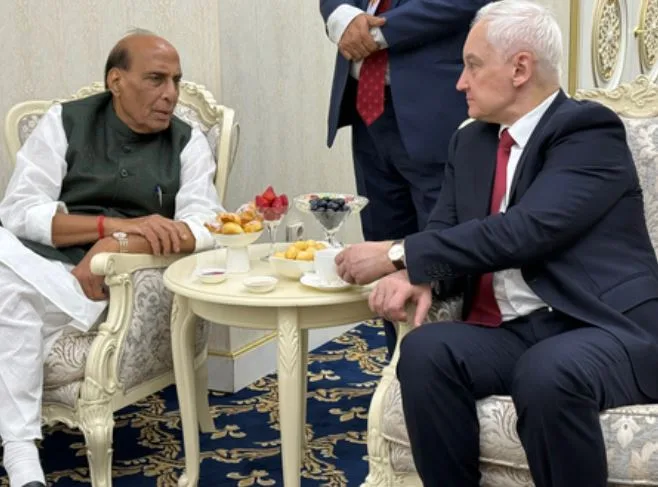 नई दिल्ली, भारत के रक्षा मंत्री राजनाथ सिंह ने रूस के रक्षा मंत्री आंद्रेई बेलौसोव के साथ मुलाकात की है। इस मुलाकात के बाद राजनाथ सिंह ने इस बातचीत को बेहतरीन और सार्थक बताया। किर्गिस्तान की राजधानी बिश्केक में आयोजित शंघाई सहयोग संगठन (एससीओ) के रक्षा मंत्रियों की बैठक के दौरान मंगलवार को भारत और रूस के बीच यह अहम द्विपक्षीय वार्ता हुई।
