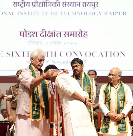 छत्तीसगढ़ की राजधानी रायपुर में रविवार को राष्ट्रीय प्रौद्योगिकी संस्थान (एनआईटी) रायपुर का 16वां दीक्षांत समारोह हुआ, जिसमें जम्मू-कश्मीर के उपराज्यपाल मनोज सिन्हा बतौर मुख्य अतिथि शामिल हुए। यह आयोजन पंडित दीनदयाल उपाध्याय ऑडिटोरियम में किया गया। इस दौरान एलजी मनोज सिन्हा ने देश के भावी इंजीनियरों को तकनीकी नवाचार और सामाजिक परिवर्तन के लिए भूमिका निभाने का आह्वान किया।