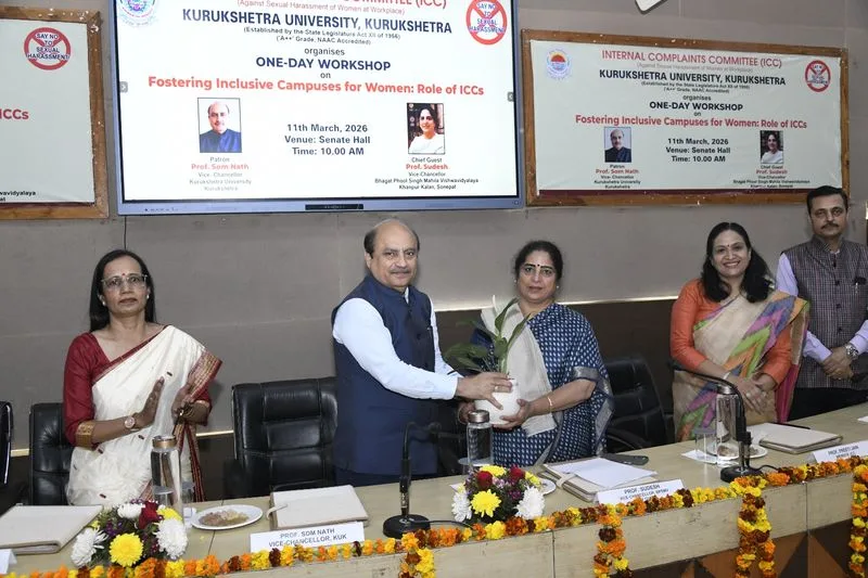 कुरुक्षेत्र विश्वविद्यालय ने “महिलाओं के लिए समावेशी परिसरों को बढ़ावा देना: आंतरिक शिकायत समिति (आईसीसी) की भूमिका” विषय पर एक दिवसीय कार्यशाला का आयोजन किया, जिसमें महिलाओं के लिए सुरक्षित, सम्मानजनक और समावेशी शैक्षणिक स्थान बनाने के महत्व पर प्रकाश डाला गया। उद्घाटन सत्र की अध्यक्षता करते हुए कुलपति प्रोफेसर सोम नाथ सचदेवा ने कहा कि महिलाओं की सुरक्षा, गरिमा और समान अवसर एक विकसित समाज के निर्माण के लिए मौलिक हैं।