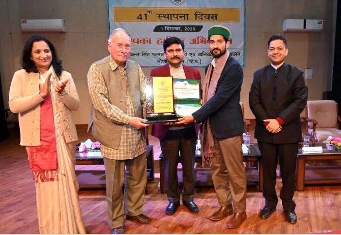 डॉ. वाईएस परमार औद्यानिकी एवं वानिकी विश्वविद्यालय, सोलन के 41वें स्थापना दिवस समारोह में कांगड़ा ज़िले के दो कृषि उद्यमियों को ‘उत्कृष्ट किसान सम्मान’ से सम्मानित किया गया। इस सम्मान के माध्यम से आधुनिक और टिकाऊ खेती में उनके अग्रणी योगदान को रेखांकित किया गया और उन्हें हिमाचल प्रदेश के प्रगतिशील किसानों के लिए आदर्श के रूप में चिह्नित किया गया।