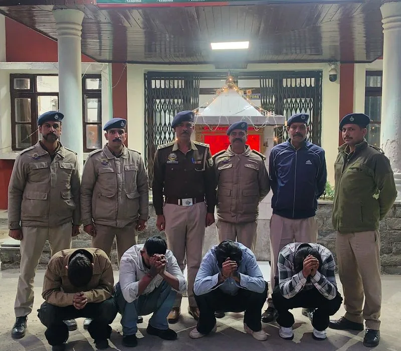 सोलन पुलिस की विशेष जांच इकाई (एसआईयू) ने कल कसौली के निकट छतरी मोड़ पर पंजाब के चार युवकों को गिरफ्तार कर उनके कब्जे से 62.13 ग्राम हेरोइन जब्त की। गिरफ्तार किए गए लोगों की पहचान जालंधर निवासी वीरेंद्र सिंह (26) और लुधियाना निवासी लखविंदर (21), कुणाल (25) और किठू मट्टू (20) के रूप में हुई है।