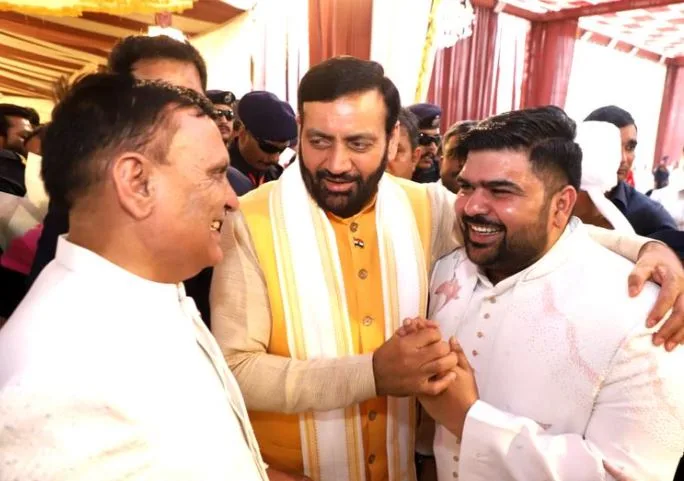 मुख्यमंत्री नायब सिंह सैनी ने मंगलवार को बहादुरगढ़ कस्बे का दौरा किया और स्थानीय निर्दलीय विधायक राजेश जून के बेटे सचिन जून के विवाह समारोह में भाग लिया। इस अवसर पर मुख्यमंत्री ने पारंपरिक सगाई समारोह में भाग लिया और सचिन को आशीर्वाद दिया। उन्होंने परिवार के सदस्यों को भी शुभकामनाएं दीं।