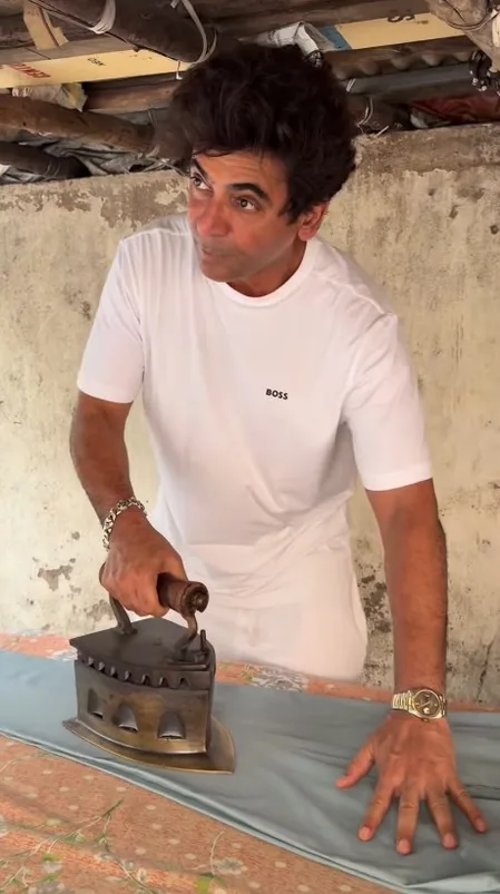 ‘Iron Man’ Sunil Grover was seen ironing his clothes on the roadside.