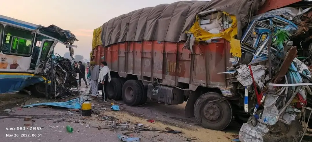 बस गुरुग्राम जा रही थी जबकि ट्रक विपरीत दिशा से आ रहा था।